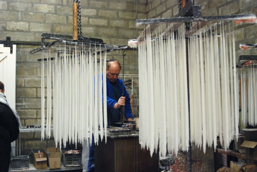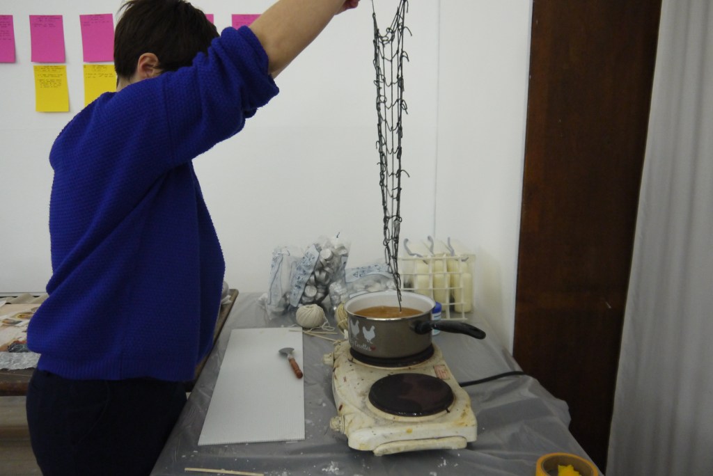 Appropriation et détournement de procédés de fabrication observés lors de l’immersion (ciergerie, gaufrage, ramendage, etc.), ainsi que des matériaux et outils liés.