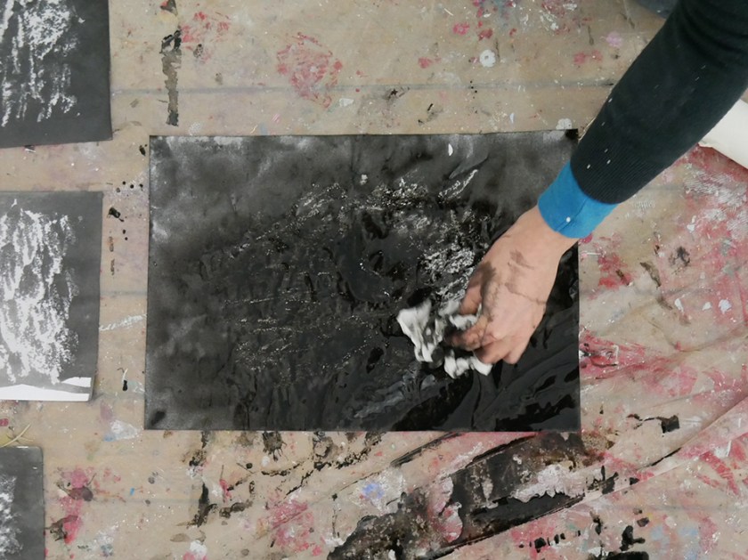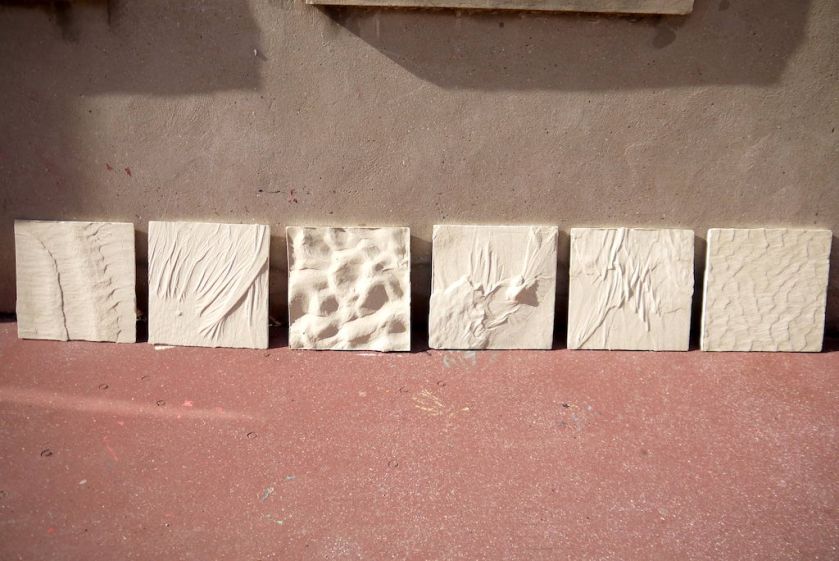 Après avoir constitué une collection de prélèvements, par le biais de différentes méthodes, nous avons réinterprété les textures du territoire (traces dans le sable, dunes, etc.).